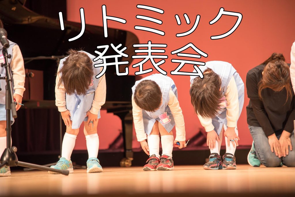 リトミックの生徒様方がグループごとに壇上へ上がり、